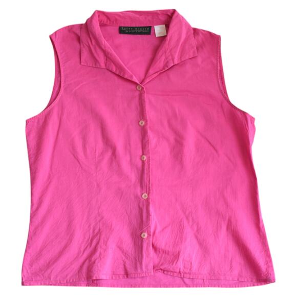 Harvé Bénard Hot Pink Sleeveless Button-Up Top Size XL 100% Cotton