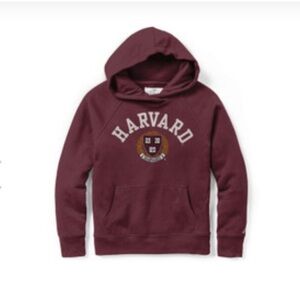 The crossover hood, along with raglan sleeves, offers a hint of sporty style, while the pullover design allows for quick and easy wear. Plus, the front kangaroo pocket lets you keep your hands snug and warm. Features a large arched Harvard logo with the Veritas seal applique stitched to the front.