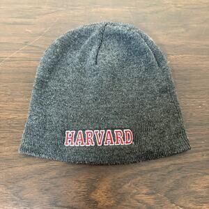 Harvard University Knit Beanie Winter Hat Gray Logo Casual Y2K
