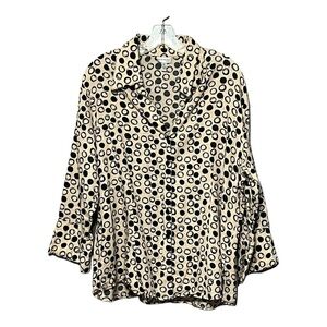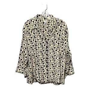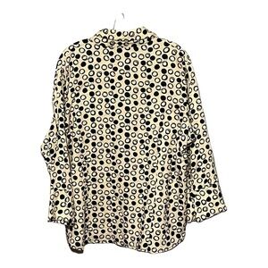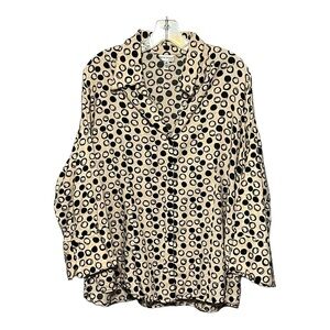 Harve’ Benard 1X Tan Black Linen Blend Circle Printed Button-Up Shirt Plus-Size