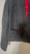 Elegant black blazer with red trim. Perfect for formal occasions. Stylish and sophisticated design.