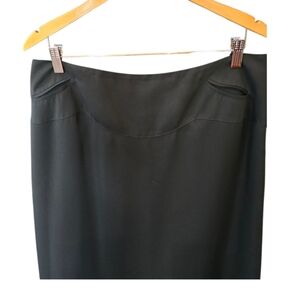 1990's Harve' Benard black long straight pencil skirt. Yoked front with faux pockets, side zip closure with button overlay. Fully lined. Excellent used condition.