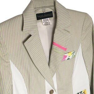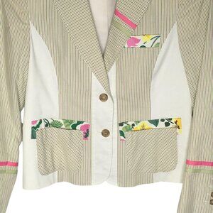 Harve Benard Blazer Jacket Womens 4 Green White Stripe Floral Cotton Two Button