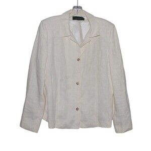 Harve Benard Blouse Linen Top Womens 12 Ivory Long Sleeves Size 12