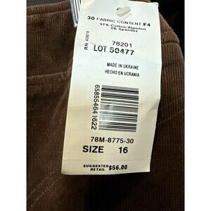 This corduroy skirt from Harvé Benard is a perfect addition to your wardrobe. The brown color adds a touch of warmth to your outfit, while the stretch feature ensures a comfortable fit. The skirt is designed with a solid pattern and features button and zipper accents, adding a touch of detail to your look. This short skirt is perfect for any occasion, whether it's a festival, hippie, bohemian, or preppy themed event. The skirt is made of high-quality fabric and is available in size 16. Please refer to the photos for more details on the style of the skirt.