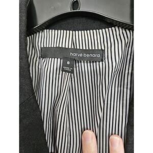 Harve Benard Linen Blend Black Blazer Jacket Button Front Women's Size 8 Medium. Fake pockets. Thin shoulder pads. Stripped lining. Excellent condition.