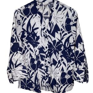 Harve Benard Linen Blend Navy White Floral Button Down M