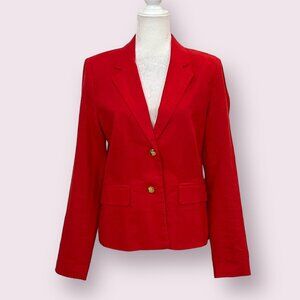 Harve Benard Red Linen Blazer Women's Size 8 Gold Button 2 Button Jacket Lined