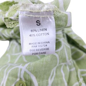 Harve Benard Small Light Green & White Linen Button Up 3/4 Length Sleeve Blouse
