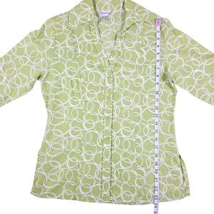 Harve Benard Light Green & White Circle Pattern Button Up 3/4 Length Sleeve Blouse