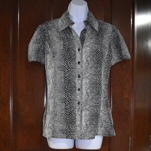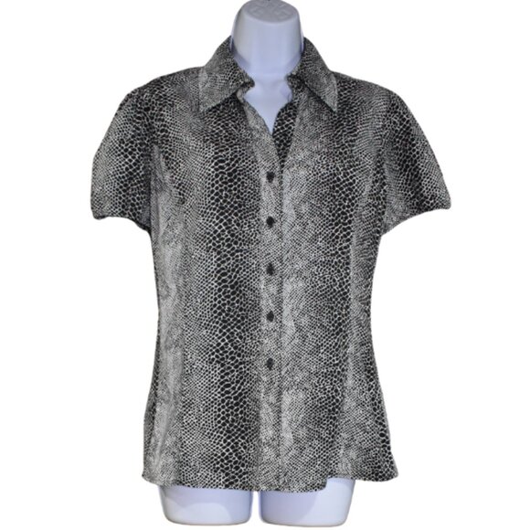 Harve Benard Snake Print Button Up Blouse Sz L Short Sleeve Cotton Collared Top