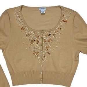 - Description: Harve Benard Cardigan Sweater Womens L Beaded Rhinestone Embellished Granny Core