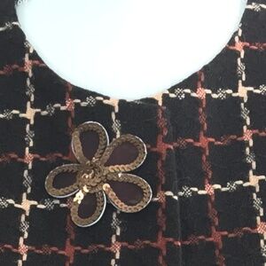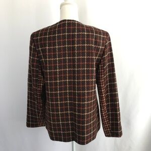 Harve Benard vintage style brown and orange plaid jacket/blazer with pockets on the front. It has a flower design on the front right. Gently used...size 14...no flaws noted...see photos for care details.