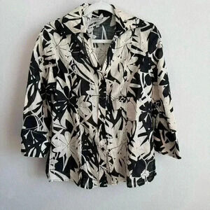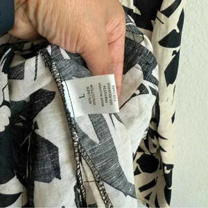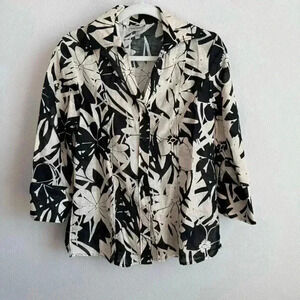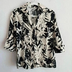 Harve Benard Woman's Black Beige Floral Linen Blend Button Up Blouse Size L