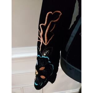 Harve Benard Womens Black Velvet Floral Embroidered Sequin Zip Blazer Jacket 10P.