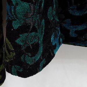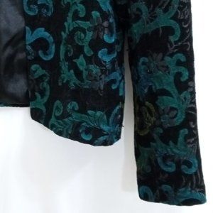 Harve Benard Women's Size 6 Textured Corduroy Lined Blazer Black with Blue/Green