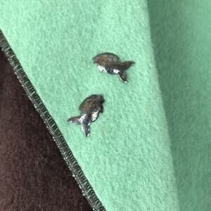 Harve Benard Wool Blend Jacket Open Front Sweater Cardigan Brown Green Silver Look Fish Lapel Pins Office Work Workwear Career Professional Business Casual Cozy Fall Winter