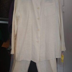 Vintage Harve Benard women's size 12 100% linen cream/ivory crop-pant suit