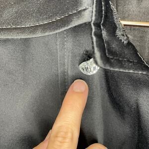 The Harve Bernard Black Satin Trench Coat Diamond Design Buttons Size 4 is a luxurious and stylish piece of outerwear. It is made from a high-quality satin fabric that is both soft and durable.