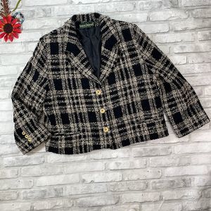 Harve Bernard Crop Short Blazer Jacket Vintage S Gold Button Single Breasted Ret