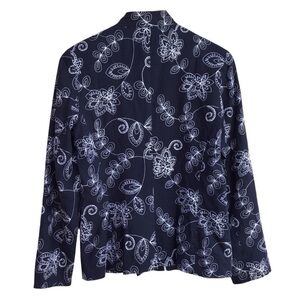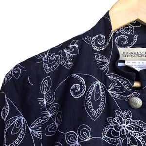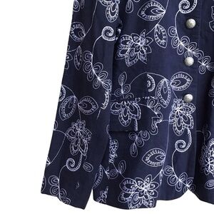 Harve Bernard Linen Blend Navy Blue Embroidered Jacket Size 8