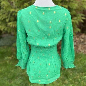 Harve Bernard Palm Green Blouse with Gold Foil – Size Small – NWT