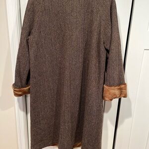 Harve Bernard Tweed Womens Full Length 100% Wool Coat Size 14 Faux Fur Lining