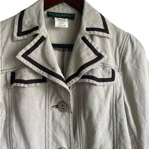 Harve Bernard Women Cropped Jacket 4 Beige Brown Trim Scabby Chic Boho Y2K Retro