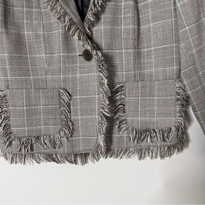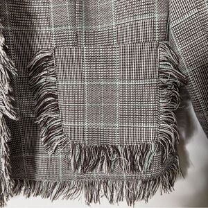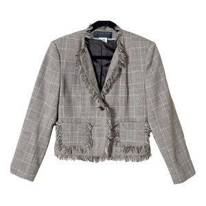 Harve Bernard Wool Blend Brown Plaid Fringe Detail Blazer Jacket Size 8 Petite
