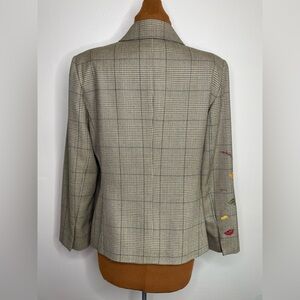 Harve Bernard Wool Plaid Jacket with Floral Embroidery Size 12