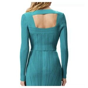 Harve Leger Ribbed Sweetheart Top M Green Long Sleeve Cropped Party Y2K $690
