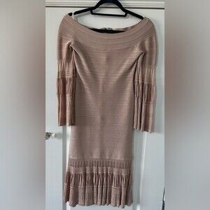 Harve Leger Rose Blush Bandage midi Dress with 3/4 sleeves Size XS
