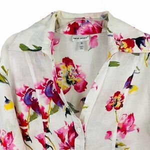 Harve Bernard White Floral Linen Blouse Size Medium