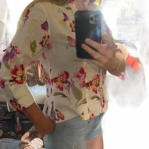 Harve Bernard white floral linen Blouse Medium
