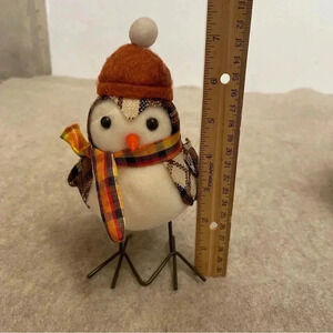 Harvest Autumn Fall Fabric Felt Birds Set 2 Birds Plaid Scarf Hat Holiday Decor