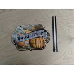 Adorn your home with this charming wooden wall sign featuring vibrant pumpkins and a heartwarming "Harvest Blessings" message. Enhance your seasonal decor with its rustic charm, perfect for adding a cozy autumnal touch to your space. Its lightweight design ensures effortless hanging, complementing both modern and traditional decor.