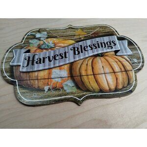 Harvest Blessings Pumpkin Rustic Fall Wooden Hanging Wall Sign Thanksgiving