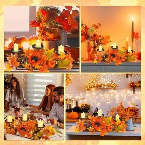 Harvest Centerpiece Thanksgiving Candle Holders with 3 LED Candles and 1 String