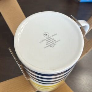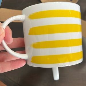 One navy and one yellow on creamy white with thin modern handle. Coffee, tea, or milk for dipping cookies into!
