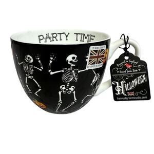 Harvest Green Studio Halloween Party Time Skeletons Bone China Coffee Tea Mugs