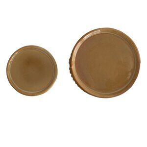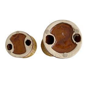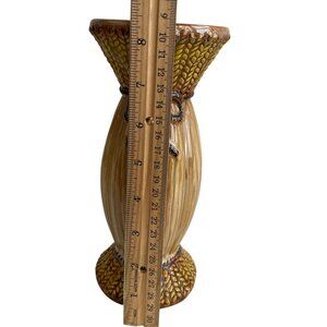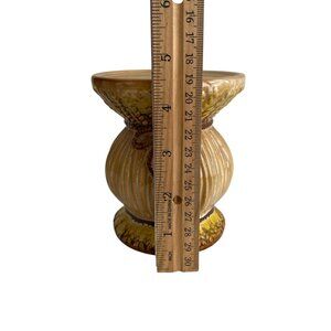 Harvest Pillar Candle Holder Yellow Brown Ceramic Wheat Ribbon Thanksgiving Set