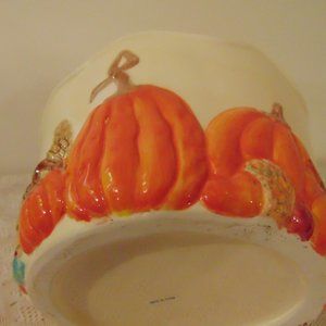 Harvest Time Ceramic Container, Features Pumpkins, Apples, Gourds, 4 inches tall