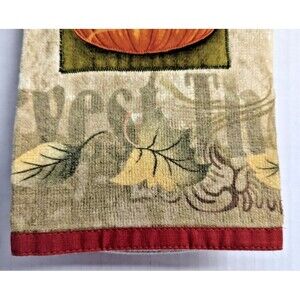 Harvest Time Kitchen Towel Appliqued Pumpkin Print Fall Leaves 1pc Gift NEW
