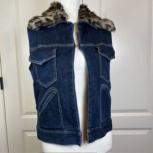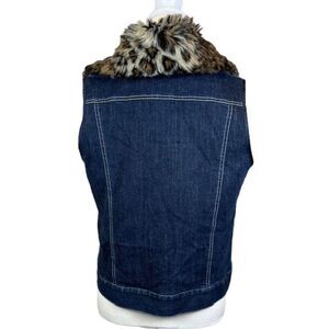 Harvey Faircloth Faux Fur Leopard Collar Denim Vest Green Lining Size Medium