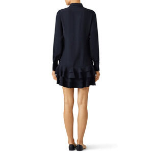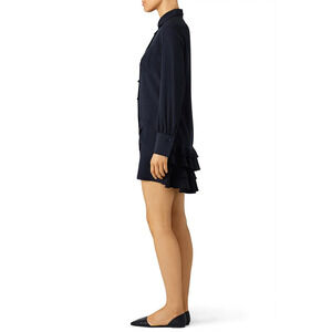 Harvey Faircloth Shirt Dress Long Sleeve Collared Tiered Ruffle Mini Navy Size 2. Originally $595.