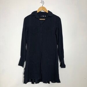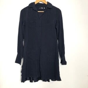 Harvey Faircloth Shirt Dress Long Sleeve Collared Tiered Ruffle Mini Navy Size 2