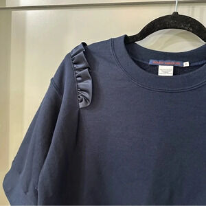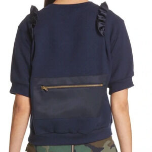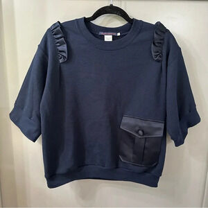 Harvey Faircloth Sweatshirt Short Sleeve Cropped Navy Sweatshirt Ruffle Sz M