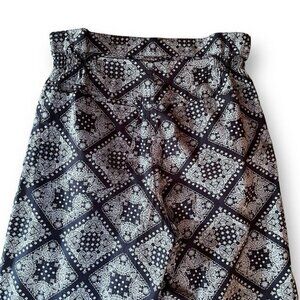 Harvey Faircloth Womens Pants Sz 8 Blue Paper Bag Waist Wide Leg Bandana Print