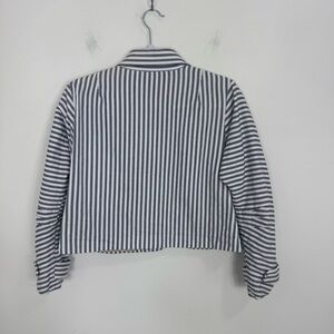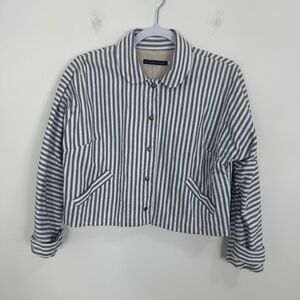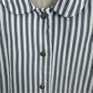 Harvey Faircloth Women’s White Blue Stripes 100% Cotton Long Sleeve Jacket SZ 2