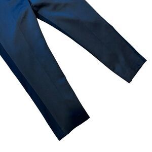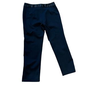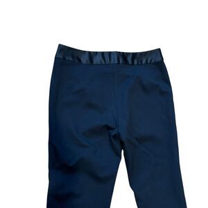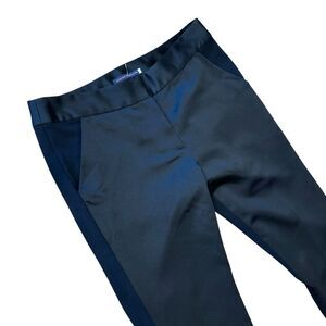 Elegant black satin trimmed trousers with a sleek design.